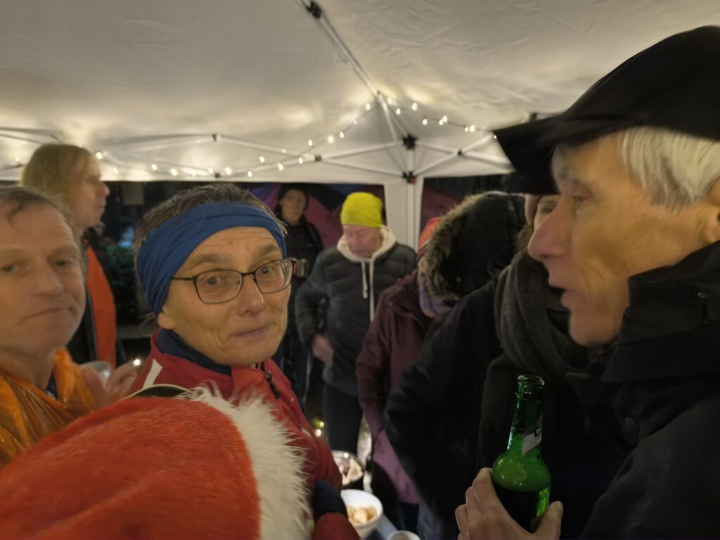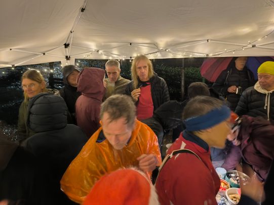 Dieses Jahr hatten wir mit dem Wetter kein Glück: wir sind beim Nikolauslauf kräftig nass geworden und haben dann aber Dank Helge’s Zelt und Thomas’s Beleuchtung sowie der ganzen leckeren Getränke und Plätzchen trotzdem eine schönes Nikolausfeier gehabt.
